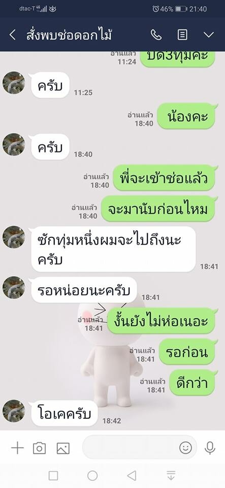 2.ก่อนจะเข้าช่อแม่ค้าให้ลูกค้ามานับและยืนดูการห่อจนเสร็จ