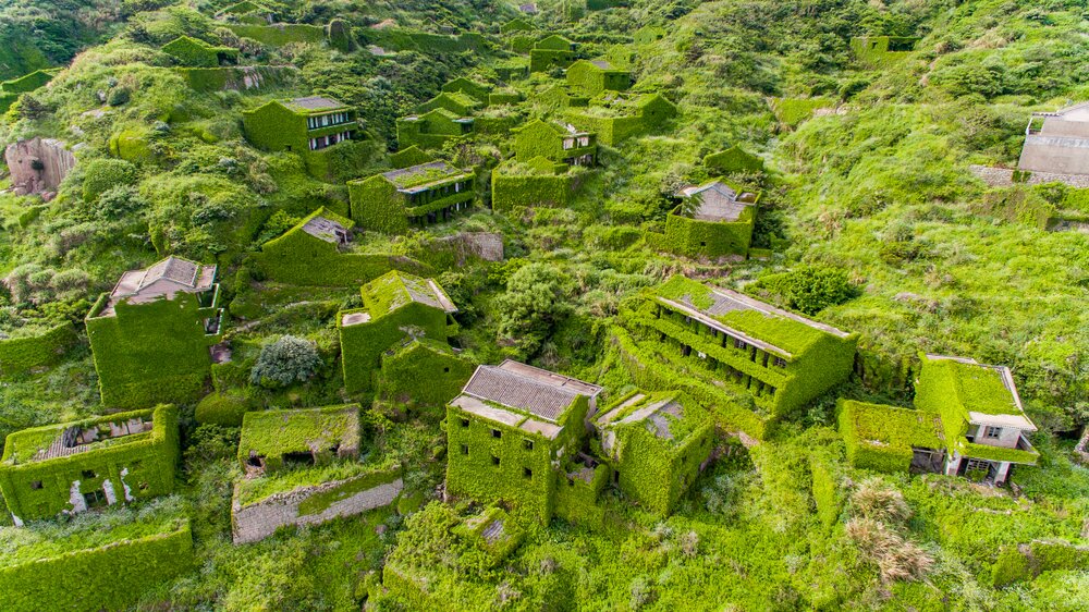 หมู่บ้านแห่งนี้จึงถูกปล่อยให้รกร้างมาเป็นระยะเวลานานหลายปี ด้วยเหตุนี้ทำให้มีเหล่าบรรดาต้นไม้ต้นหญ้าเลื้อยขึ้นปกคลุมบ้านเรือนเป็นจำนวนมากทั่วทั้งหมู่บ้านอย่างสวยงามด้วยฝีมือสร้างสรรค์จากธรรมชาติ ซึ่งมองมุมสูงนั้นสวยมากจริงๆ และมองไกลนั้น เหมือนตั้งใจสร้างให้ธรรมชาติเลยทีเดียว