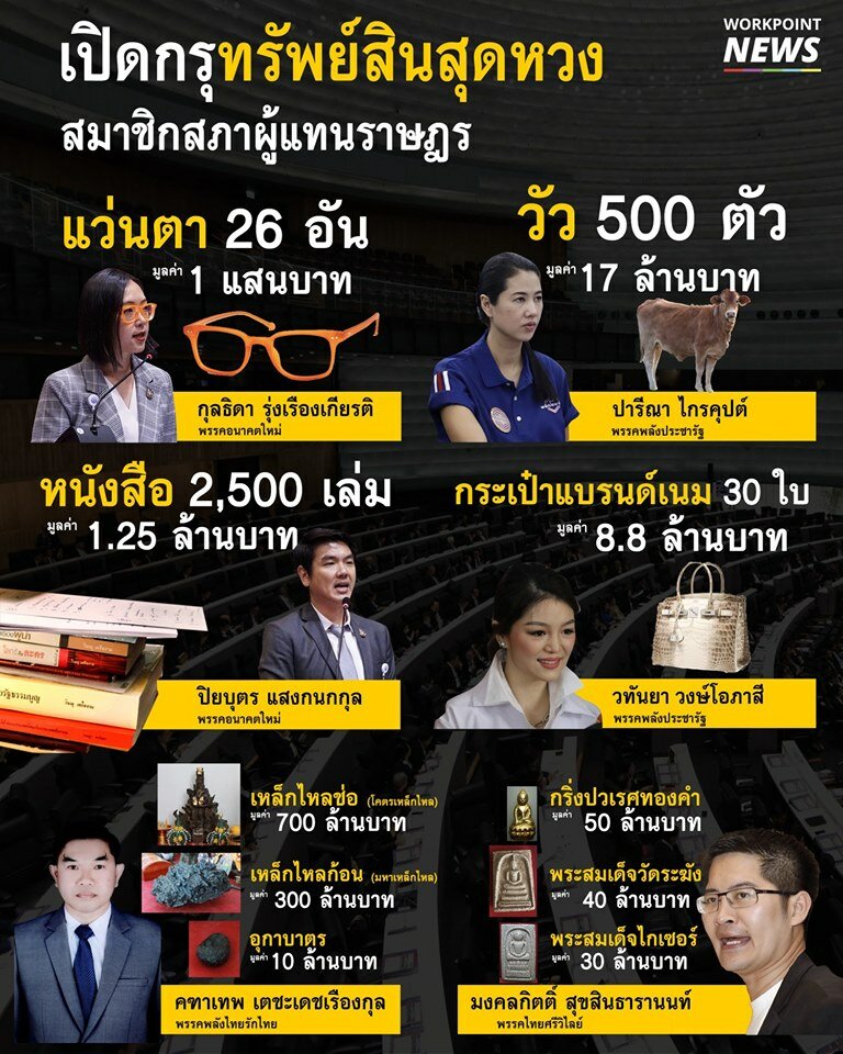 แต่ละคนนั้นมีทรัพย์สินสุดหวงที่แตกต่างกันออกไป แต่ทรัพย์สินของแต่ละคนนั้นมูลค่าไม่น้อยทีเดียวจ้า ขอบคุณทางสำนักงานคณะกรรมการป้องกันและปราบปรามการทุจริตแห่งชาติ (ป.ป.ช.) ที่ได้เปิดเผยบัญชีทรัพย์สินและหนี้สินของ ส.ส. อีกเพิ่ม 80 คน โดยจากบรรดาทรัพย์สินที่ ส.ส. ทั้ง 500 คน