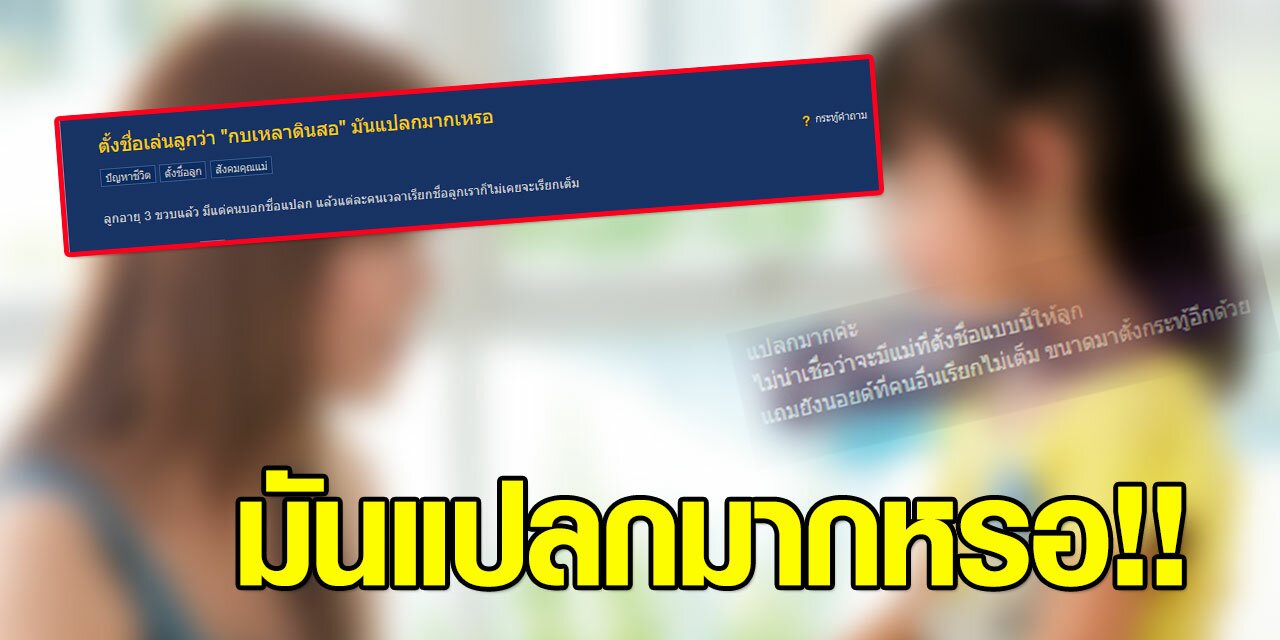คุณแม่ไม่เข้าใจตั้งชื่อลูก 'กบเหลาดินสอ' ลั่นมันแปลกมากไหม และเวลาเรียกชื่อลูกทำไมไม่เรียกเต็มๆให้ครบทุกคำ งานนี้คุณแม่ข้องใจจนต้องมาตั้งกระทู้ถาม และได้มีสมาชิกพันทิปหลายท่านเข้ามาแสดงความคิดเห็น โดยให้ความเห็นที่แตกต่างกันออกไป โดยแม่ระบุว่า