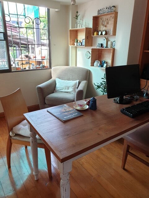 ก่อนจัด เลื่อนโต๊ะออกไป เหลือเป็นมุมว่างเล็ก ๆ
